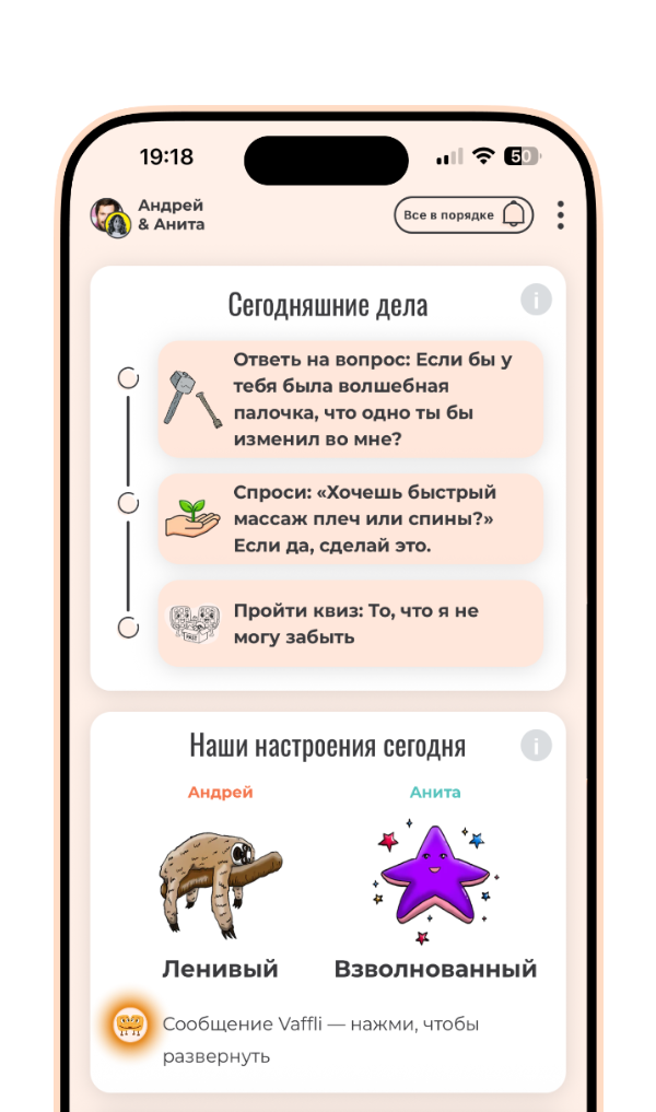 Потому что оставаться близкими сложно, когда жизнь мчится. А отношения не должны быть похожи на работу. Они должны быть в радость. И Vaffli помогает именно в этом.